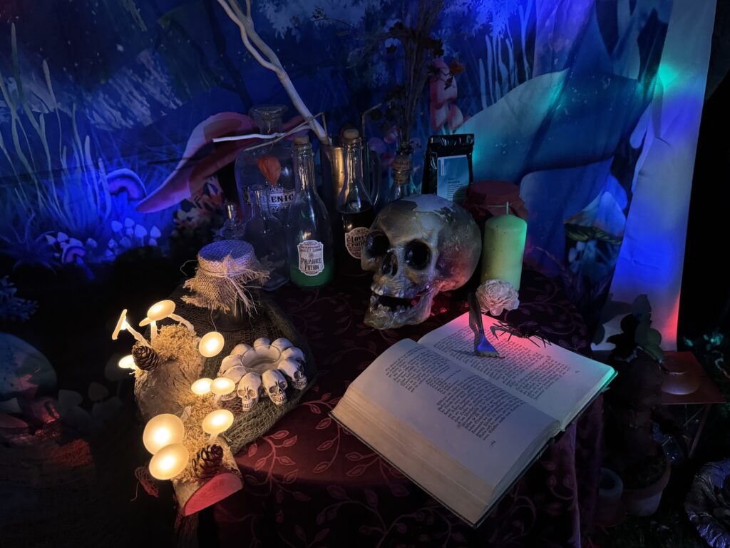 Wer es bis zur Hexenküche schaffte, konnte dort etwas verschnaufen – zumindest fast. Zwischen alten Büchern, glühenden Kesseln und geheimnisvollen Zutaten brodelte und dampfte es gewaltig. Besucher konnten hier allerlei “Zaubertränke” und “magische Rezepte” bestaunen, die mit sehr viel Liebe zum Detail aufgebaut wurden.